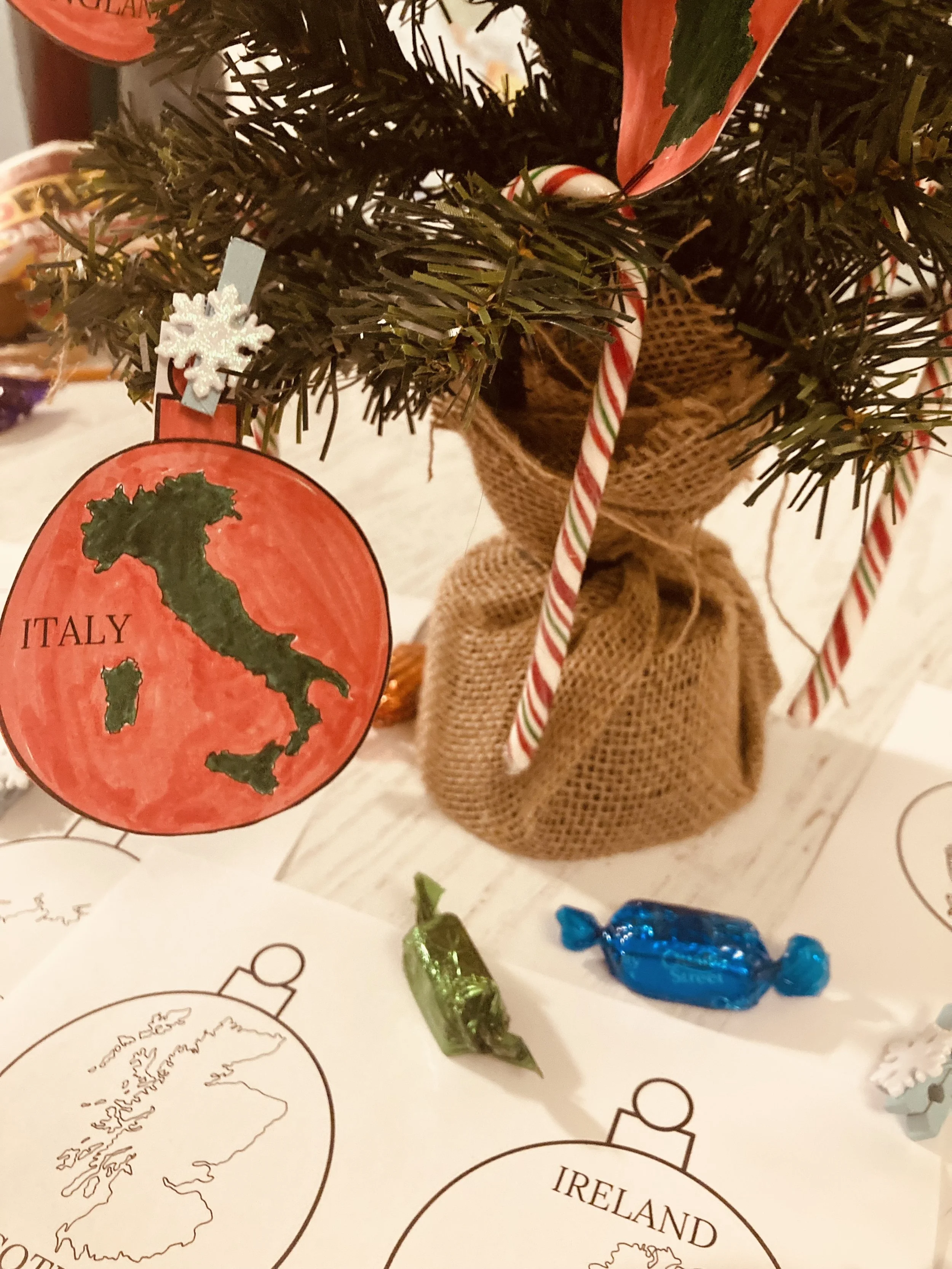 Print out, and have kiddos color a new map ornament each time you learn about a new country this month with this Advent! Pin up on your classroom or living soon Christmas Tree.