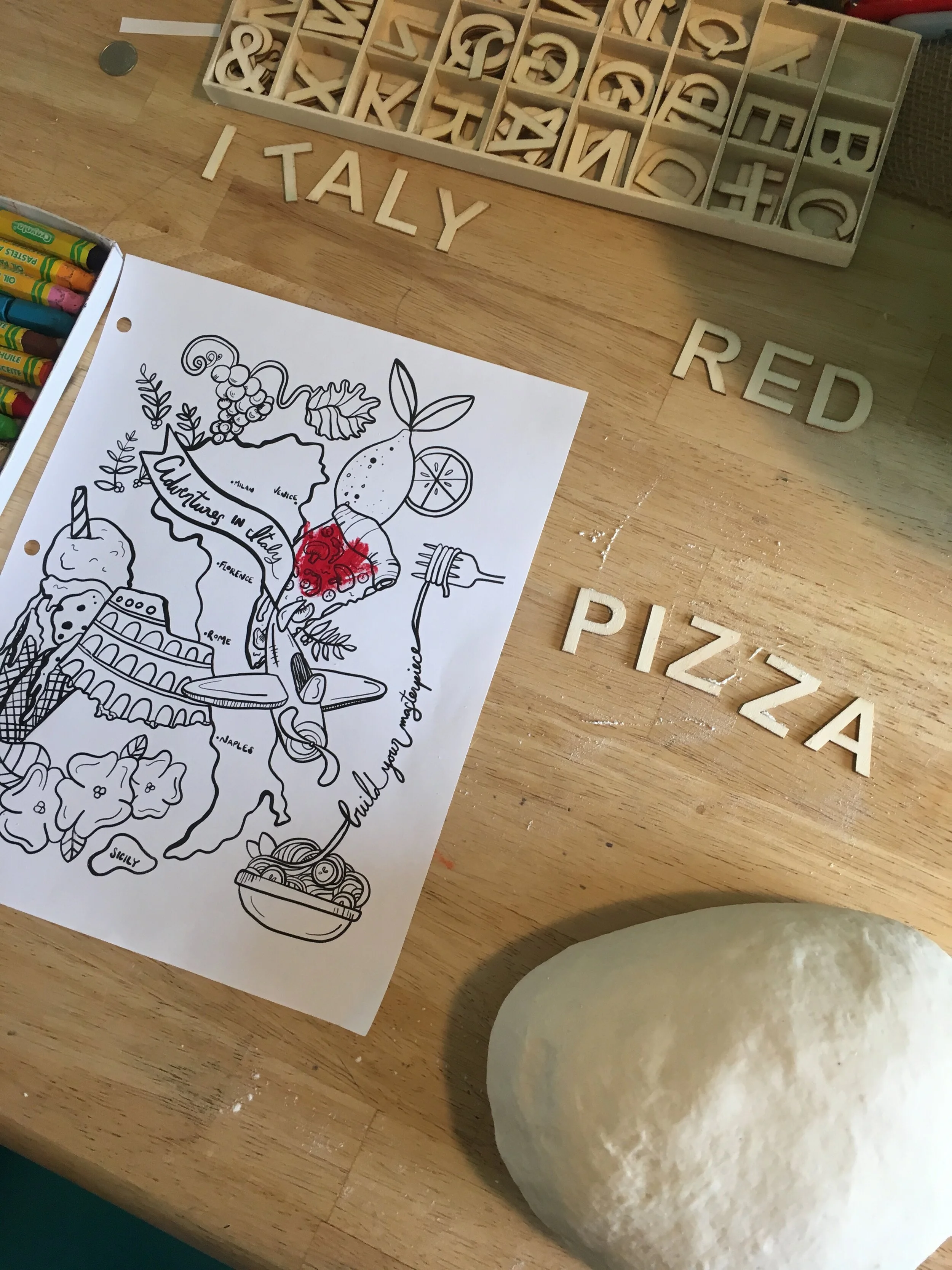 Begin your #readpaintcook adventure with our first Adventures in Italy with the Build Your Masterpiece Class. Color the map of Europe, find Italy, learn all about the Flag, history, pizza and so much more with our 26-page bite-sized adventure for ages 3 to 13 and beyond.