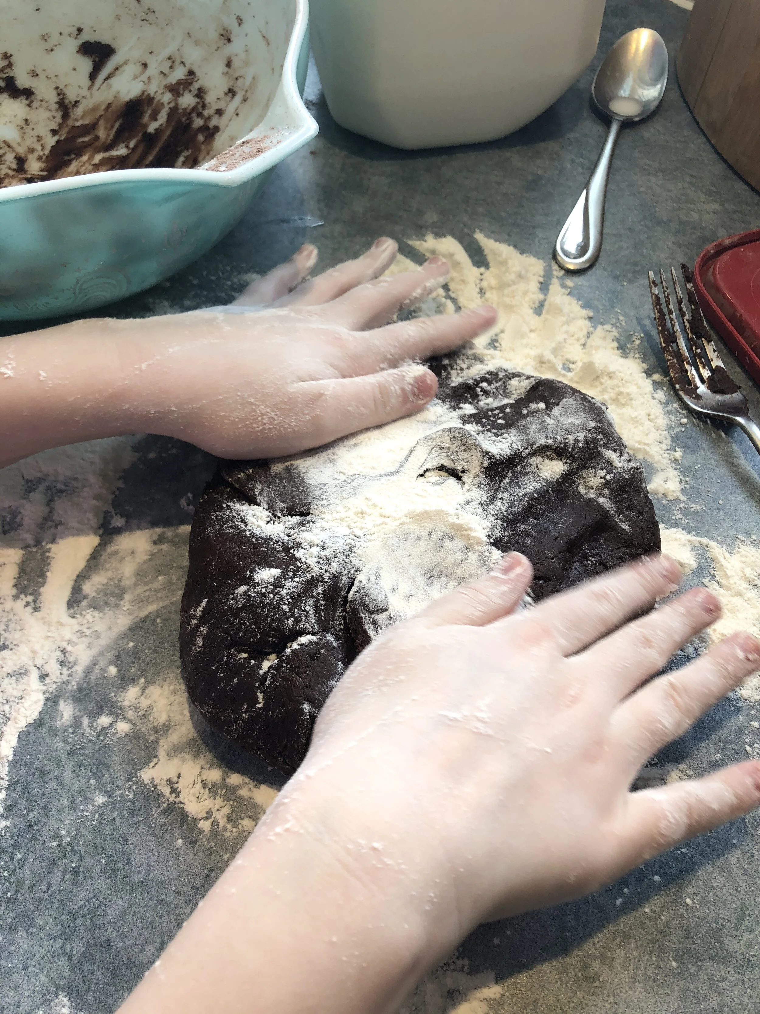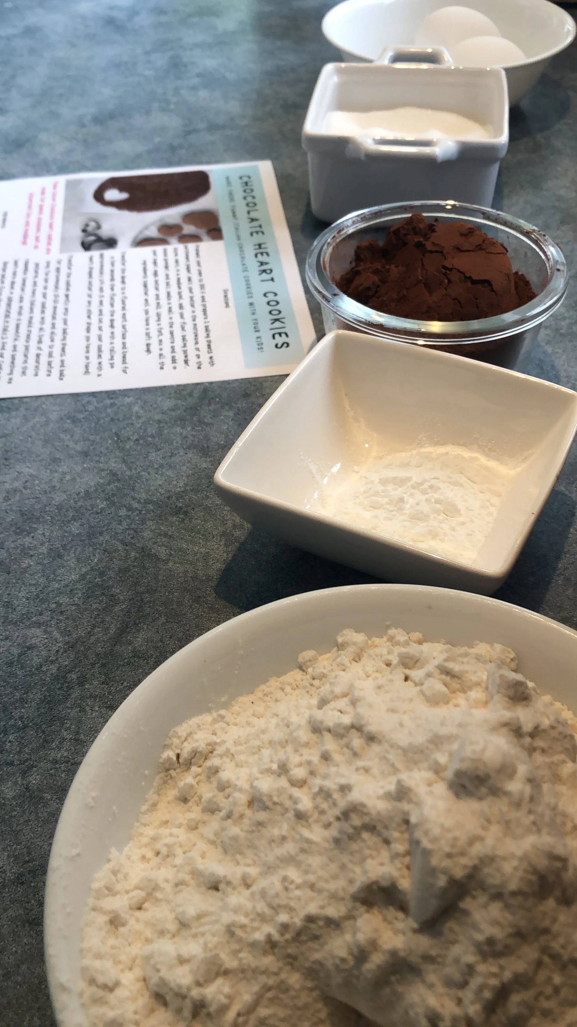 Daddy is home too, and helped set up the ingredients for success! I would defiantly recommend having your hubby come in to help set up, if you can, to bring the whole family together for this one. And, if you guys don’t prefer chocolate, you can always leave the cocoa powder out, and make them vanilla only cookies or, you can also put some food coloring in, and make them pink, or red - the options are wide open really!